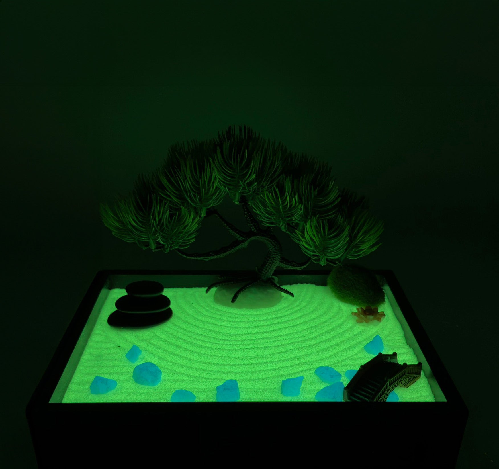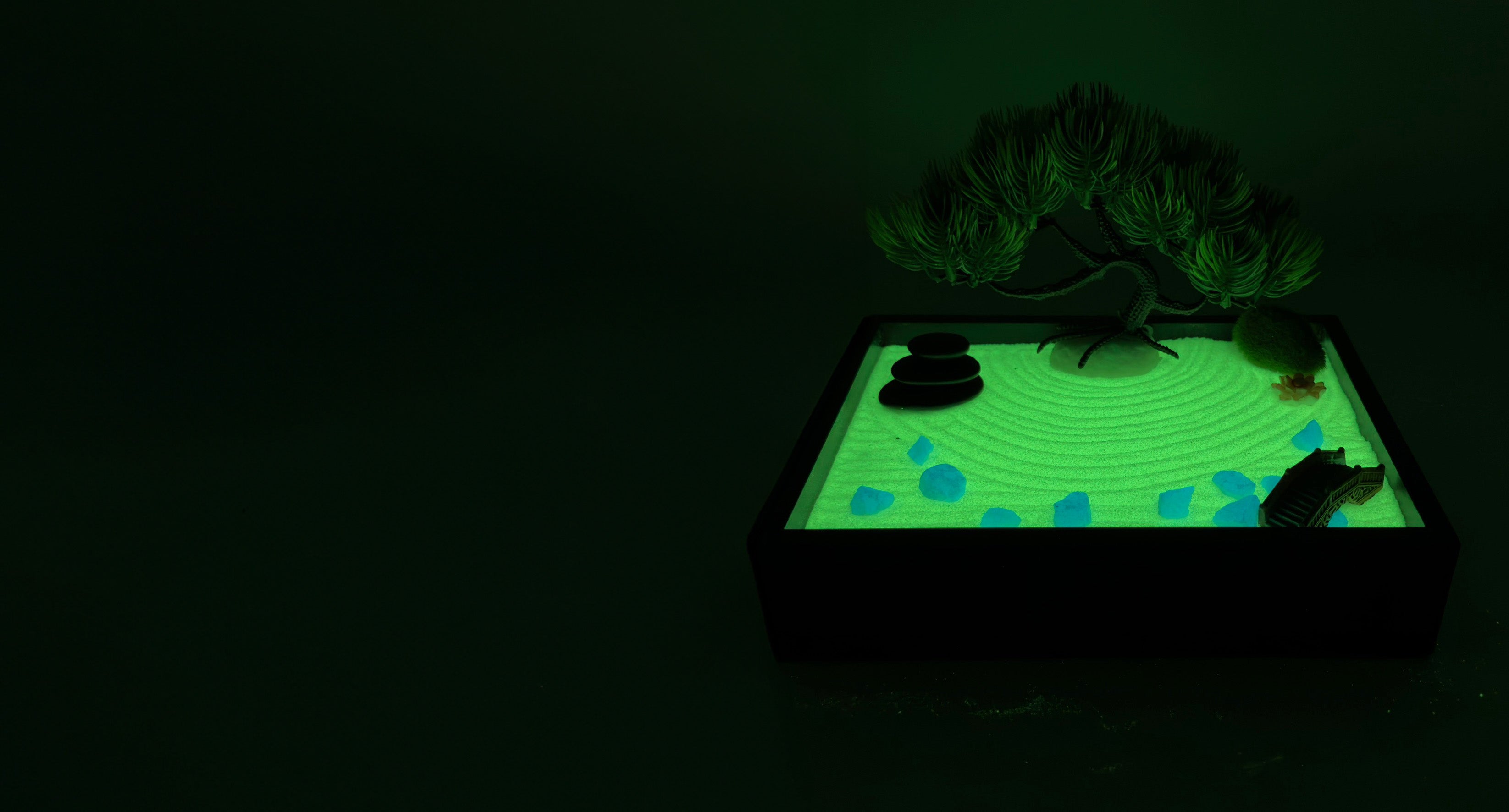 Aura Zen Gardens is the first and only mini zen garden that glows in the dark. Designed with soothing glow-in-the-dark sand, it’s a calming escape you can return to anytime.