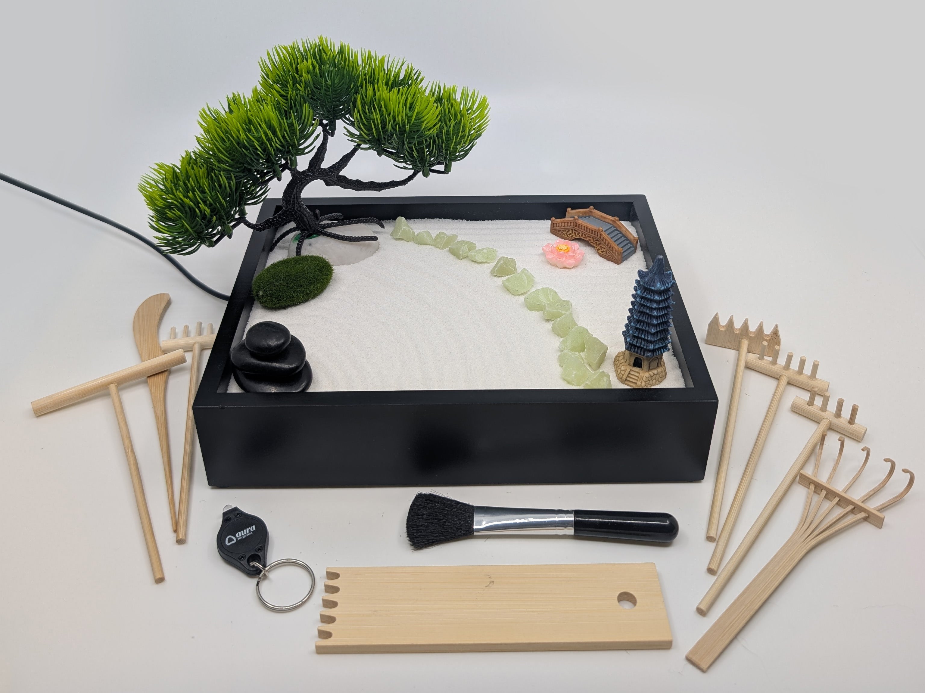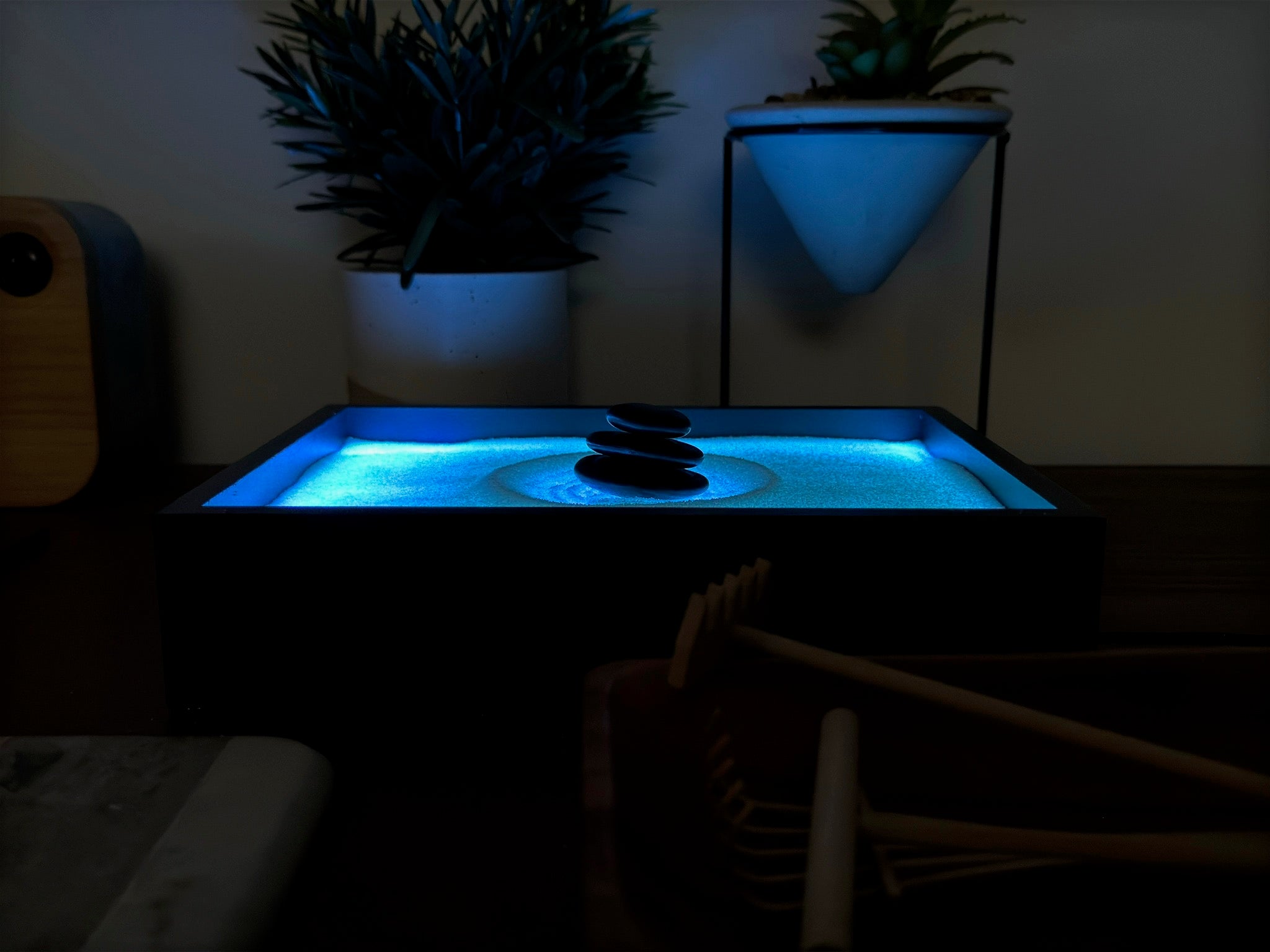 • I never thought a mini zen garden could be this relaxing. Raking new patterns and watching it glow at night has become my favorite way to wind down before bed.
